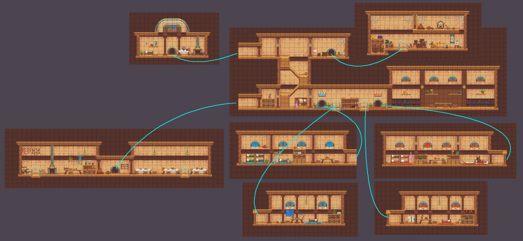 Supporting a map isn’t something you can tack on afterward. It has to be a core design principle from the start. Every level to be designed must be evaluated under the lens of “will this fit into coherent map space?” That’s a very different framework from Phoenotopia, where we treated the canvas as unlimited. That freedom was liberating – but it came at the cost of the game being unchartable.