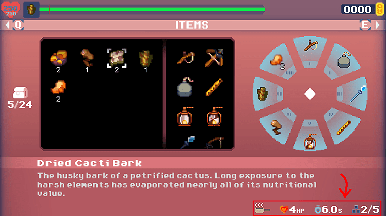 Phoenotopia’s healing items gained flavor too. Small items took up less inventory space, healed a little bit, but quickly. Vice versa for big items. We could mix those values to create different tiers of healing items, which added variety and richness to the game world.